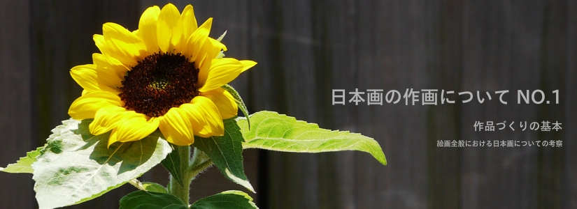岩絵の具・・・字のとおり岩を砕いてできた絵の具である。絵の具は一般に5から13まで番号がついている。数が少ないほど絵の具の粒子が粗く、数が大きいほど絵の具の粒子が細かくなる。そして、荒い粒子の絵の具は濃い色で細かい粒子は薄い色になる。13番以降の絵の具はびゃく(白)と言って白に近い明るい色になる。絵の具の扱いは、粒子が粗い色ほど難しくなる。普通よく使う絵の具は、8から11番ぐらいの絵の具が多い。しかし、描く人の好みによるので何番がいいのかは、その人による。自分が使用する色によってそろえる必要がある。群青の好きな人は、何番から何番の絵の具が必要か選ばなければならない。そのようにして他の色の絵の具も選ばなければならない。すべての色をそろえることは、不可能なので、色選びは、画材店へ行って直に見て買う必要がある。もちろん、金に糸目をつけない人にはすべての色を購入することは可能である。その岩絵の具に膠を混ぜて筆や刷毛で塗る。岩絵の具だけでは実際に色を付けることはできない。油絵の具のようにすぐに塗れるというわけにはいかない。その辺がやっかいな、即興性のない、扱いにくい画材でもある。しかし、色はどんな絵の具よりきれいなので、その魅力にとりつかれてしまうことが多い。宝石を砕いた絵の具だからきれいで当たり前である。もちろん、人工でできた安い絵の具もあるが、塗りにくいことと、色に深みがないことを覚悟しなれればならない。絵の具の計量は一量目(両目)単位ではかり売りで購入することになる。 膠・・・岩絵の具に混ぜてぬ塗る一種の糊である。動物性のものでゼラチンを主成分にした接着剤に近いものである。粒状のものと棒状のものがあるが、自分の好みで選べばよい。水で煮込んで使うが、膠と水の量は自分の経験と勘で身につける必要がある。はじめは先生について学ぶことが近道である。微妙なものなので言葉だけでは説明できない。生ものの糊であるので、すぐに腐ってしまう。夏場は一日で腐ってしまう。冬場は三日ぐらいはもつ。冷蔵庫などに入れて数日もたすこともできる。しかし、鮮度は落ちるので気をつけたい。描くそのつど作るほうが賢明である。夏場はやや薄く、冬場はやや濃くつくるのがよい。その勘は長年の経験によるもので、自分で見つけ出すものである。扱いを間違えると絵が割れてくるので十分と注意を払わなくてはならない。冬場で絵を乾かすために暖房機を使ったりするが、絵に近すぎると割れたりする。誰もがよく失敗する例である。下の絵の具が乾かないうちに塗ると、下地が壊れてしまうので注意をしたい。じいっと我慢して乾くのを待つ、忍耐強さが必要である。日本画は、絵を描く前の準備に時間がかかり、色を塗っても乾くまでに時間がかかり、大変根気の必要な画材である。油絵のように即効性がないので途中で作画意欲が薄れてくる心配がある。描く前の下準備をしっかりして、腰を据えて取り組むことが大切である。画材の扱い難さが表現技術の問題として大きくクローズアップしてくるので、心して取り組む必要がある。油絵の画材は扱いやすく、初心者でもすぐ描くことができるが、反面他人にないものを見つけ出すことは、至難の技が必要となる。日本画にしろ油絵にしろ自分だけの表現を見つけ出すことは、大変な努力がいるものである。 自分はどんなものを絵として描きたいのか考える必要がある。はじめはいろいろなものを習作として描くと思うが、そのうちに自分の得意な主題は何かを自覚するようになる。日本画の画材の特性からして油絵のような自由な主題が選べないことに気づくと思う。どうしても主題設定に制限ができてくることを覚悟しなければならない。その枠を壊す作画については、描く本人の制作意欲にかかわってくるので次の機会に考えたい。続けて追求したいテーマを見つけることは、簡単なものではない。絵画全般についてよく研究をし、見つける必要がある。普遍性のあるテーマがいいが、そうかといって誰もが追求しているものだと個性を発揮できないので注意しなければならない。できるだけ長く追求できるものがよい。最低5年は続けてほしい。きっと自分だけの表現が見つかるはずだ。 日本画でも洋画でもかならず必要な技法がある。知らないでやるよりも知っていてやる方が自信につながる。技術にあまりこだわりすぎると、反面、自由な創作ができなくなるので気をつけたい。進んでくると技術を壊す作画もあることに気づくようになってくる。しかし、これはずいぶん先の研究になるので、本人の意欲によるものである。絵画全般に必要な技法として構図法がある。日本画と洋画の構図法は少し違うが、さしあたって洋画の構図法を学んでほしい。三角形構図とか平行線構図とか言われる構図法のことである。詳しくは自分で研究してほしい。絵を描く時の効果的な組み立てができるからだ。大切な技法に