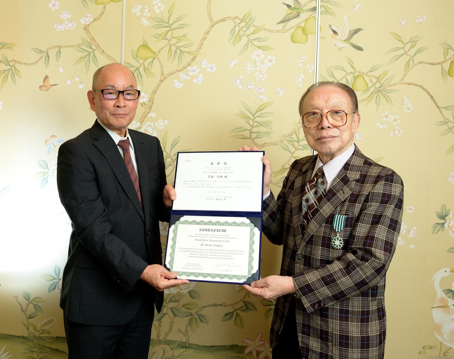 国際美術評論家の長谷川栄先生よりアート・ルネサンス・グランプリ賞を授与される。