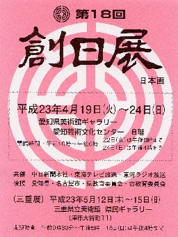 毎年恒例の所属する公募展 『創日展 』 が無事終了してホットしているところである。中央画壇から離れ、名古屋を拠点に日本画だけの公募展を創設して18年が経過する。よくここまで続けてこれたものだと今を振り返っている。この間いろいろと紆余曲折があったが、こうして恒例の展覧会に成長することができて大変うれしく思っている。大手の公募展にない独自の『創日展』を展開していくことが今後の課題になる。