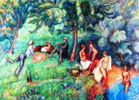 アウトサイダーの作家はおもしろい作品をつくるが、絵をデザインすることができないために同じことの繰り返しになっていることが多い。また売り絵専門の画家もこの例にならっていることが多い。へたに冒険をして売れなくなったら大変だという意識が働くのだろう。こうなったら芸術活動ではない。商品をつくる行為でしかない。しかし、どちらを選ぶかは本人の自由であるわけで要らぬお世話ということになる。さて、私のこの考えを理解してくださる方が果たしてどのくらいいるのか知りたいものだが、知る由もない。