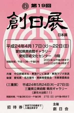 2012年 第19回 創日展は盛会のうちに終了し、ホットしているところである。まだ巡回展の三重展があるが地方展になるので私の任から離れることになる。