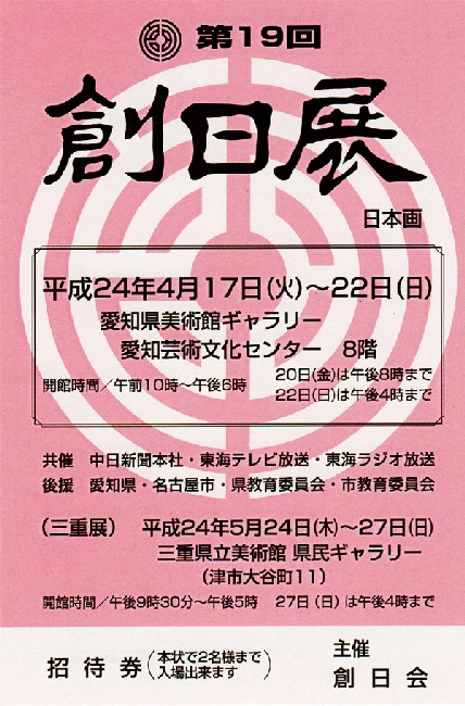 4月19日(火)~24日(日) 愛知県美術館で第18回創日展(日本画)を開催する運びとなり、その準備に専念するために休止とする。