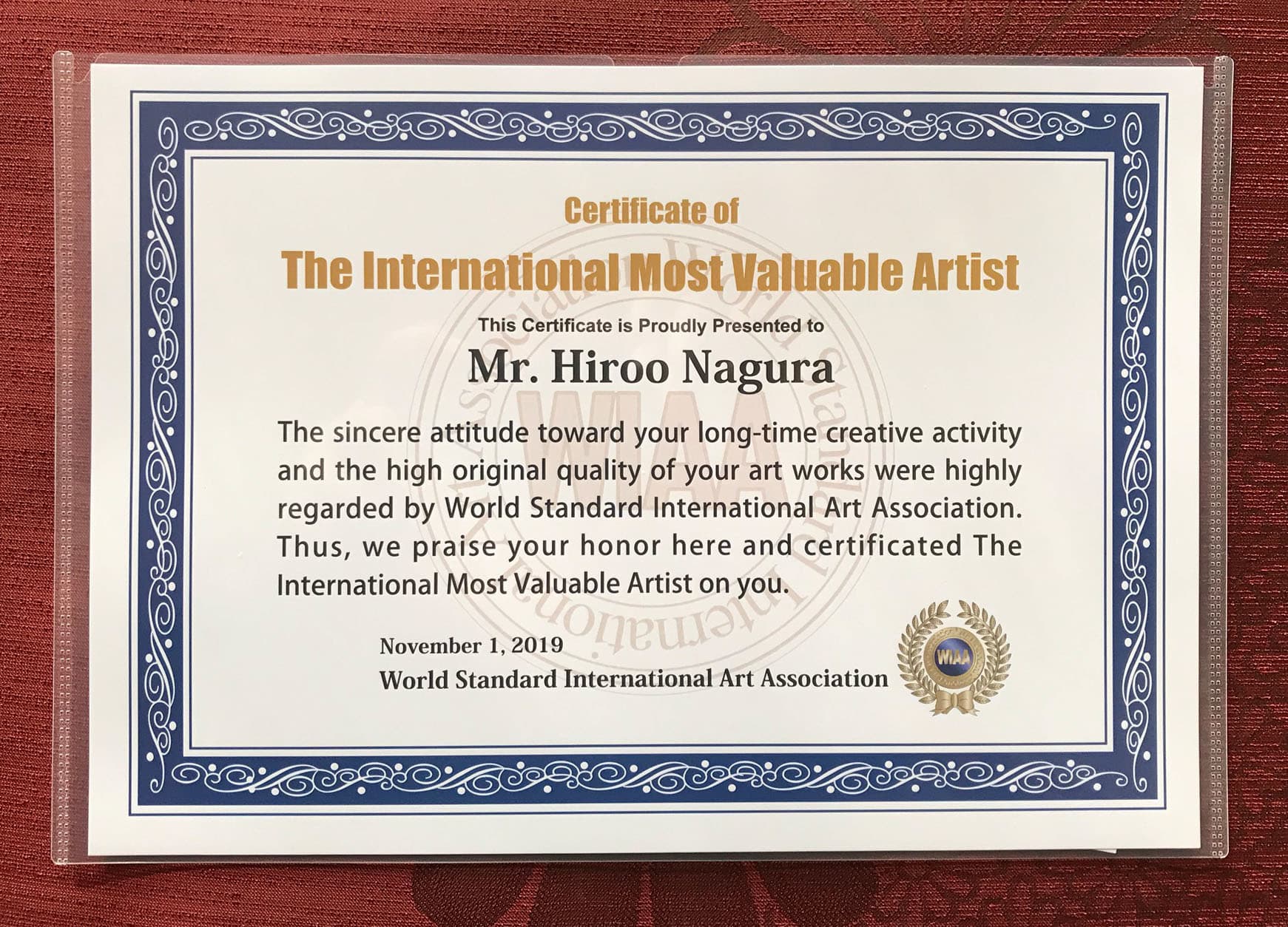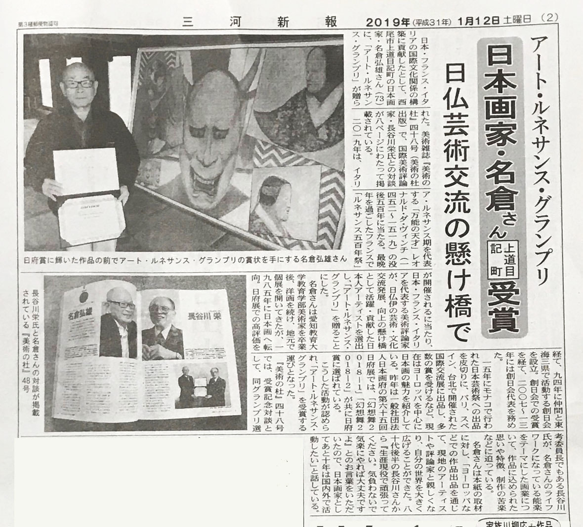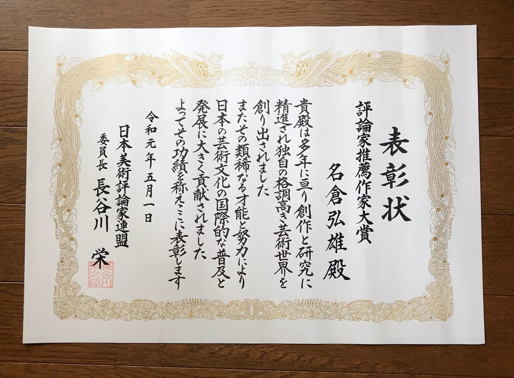 国際美術評論家の長谷川栄先生よりアート・ルネサンス・グランプリ賞を授与される。