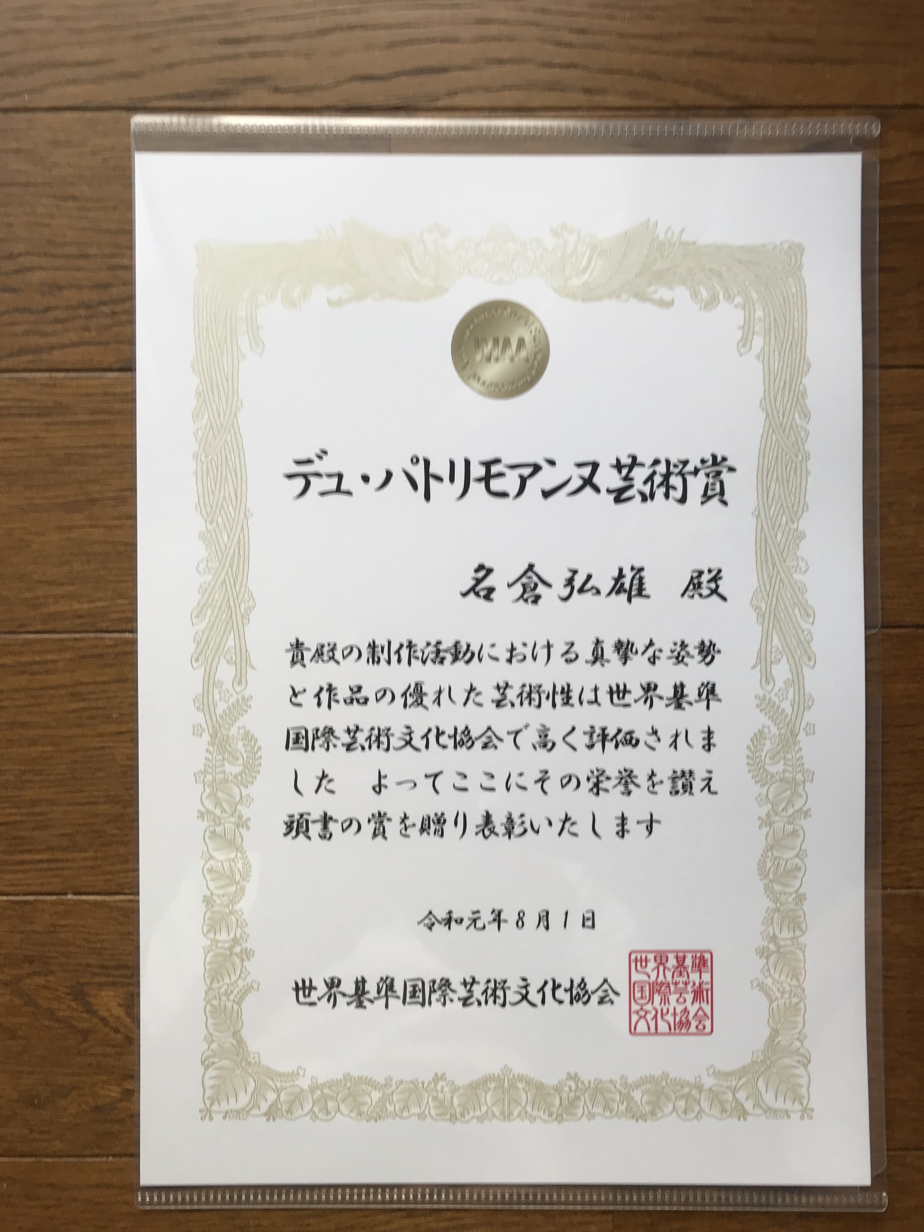 世界基準国際芸術文化協会よりデュ・パトリモアンヌ芸術賞