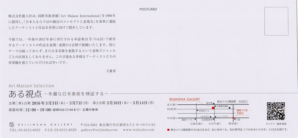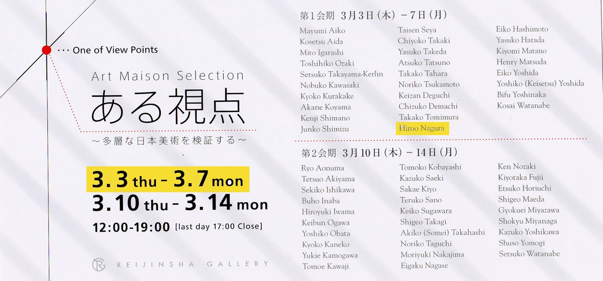 ご高覧頂ければ幸いです。 3.3 thu - 3.7 mon Hiroo Nagura at Reijinsha Gallery Tokyo Ginza