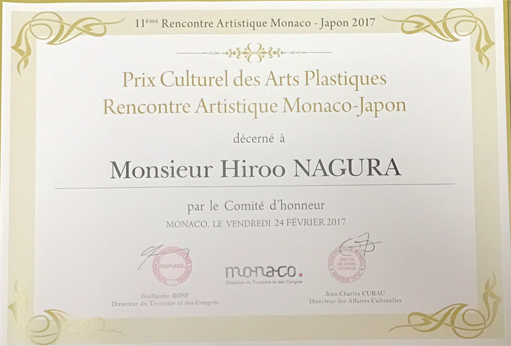 モナコ・日本芸術祭「造形芸術文化賞」を受賞する。
